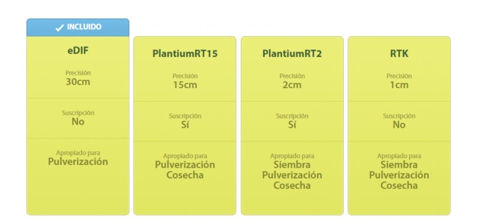 Todos los pilotos automáticos y guías utilizan una señal de GPS para navegar. El nivel de definición de la señal determinará la precisión del dispositivo en tareas a campo, ayudando a reducir costos y optimizar el trabajo.