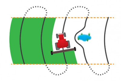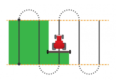 Se usa cuando se debe trabajar en líneas paralelas. Se define un punto inicial (A) y un punto final (B). La Recta A/B aparecerá como una línea guía recta entre ambos puntos. A partir de allí, todas las demás pasadas se harán con perfecto espaciado a ambos lados de ésta. Haga la primera pasada y el banderillero satelital creará automáticamente el patrón a seguir, que quedará grabado en el mapa y se cargará automáticamente al volver a abrirlo.